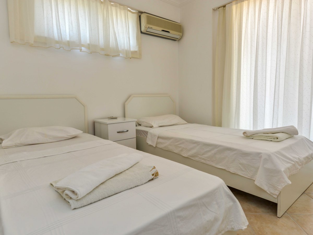 Yatak odalarında temiz nevresim takımları ve havlu takımları bulunmaktadır. Yatak odalarının hepsi klimalı ve manzaralıdır.
