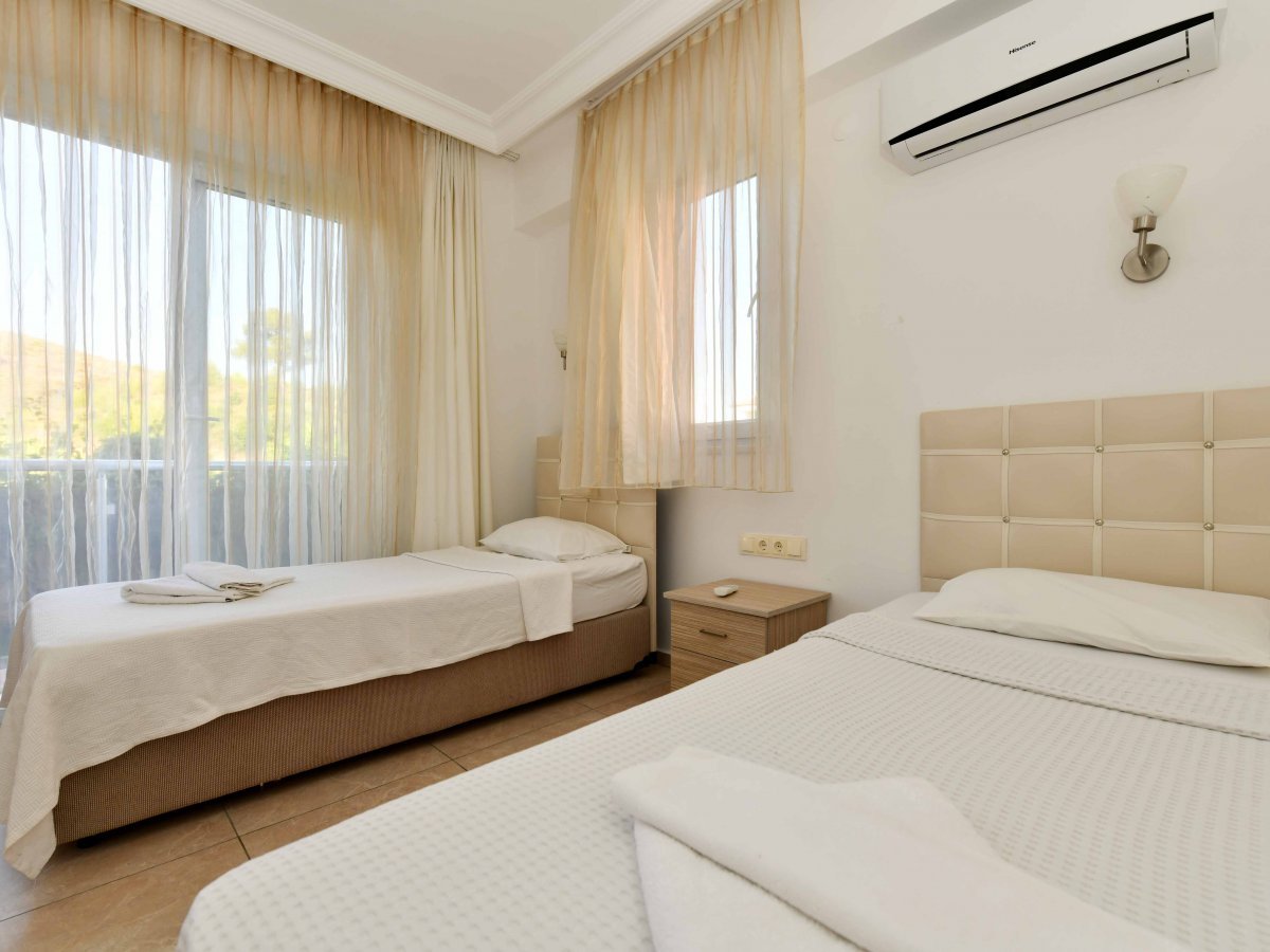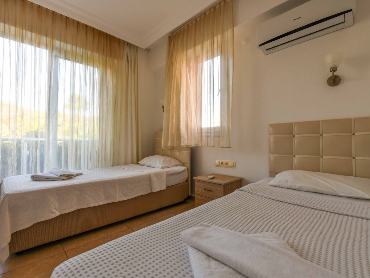 The nearest large town of Fethiye is only 4km along the coast. It takes only 10 minutes by dolmus (local bus) and 15 minutes by water-taxi. The lively market town of Fethiye with its traditional bazaar, marina, charming restaurants, great shops and night-life can be easily reached by water taxi, minibus, bike or by car. There are many boat trips from Fethiye marina to places such as The Twelve Islands; Oludeniz with its famous beach and paragliding facilities 16 km away; Gocek with its marina and market about 20 km away and the beautiful Greek Island of Rhodes 50 minutes away on hydrofoil. Other nearby attractions include Jeep safaris, horse riding, many UNESCO sites, Saklikent Gorge & the ghost town of Kayakoy to mention just a few. Diving is also popular in the Gulf of Fethiye, with the clear blue waters being home to a host of reefs, sunken ruins, wrecks as well as colourful marine life. Dalaman Airport is a 40 minute drive away and is the major airport in the area with frequent direct low-cost flights from all over Europe and Russia.