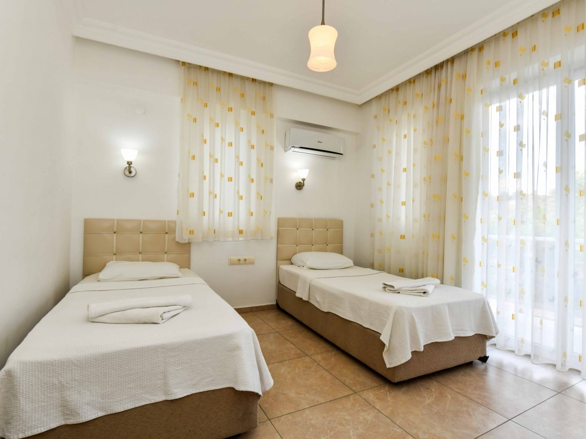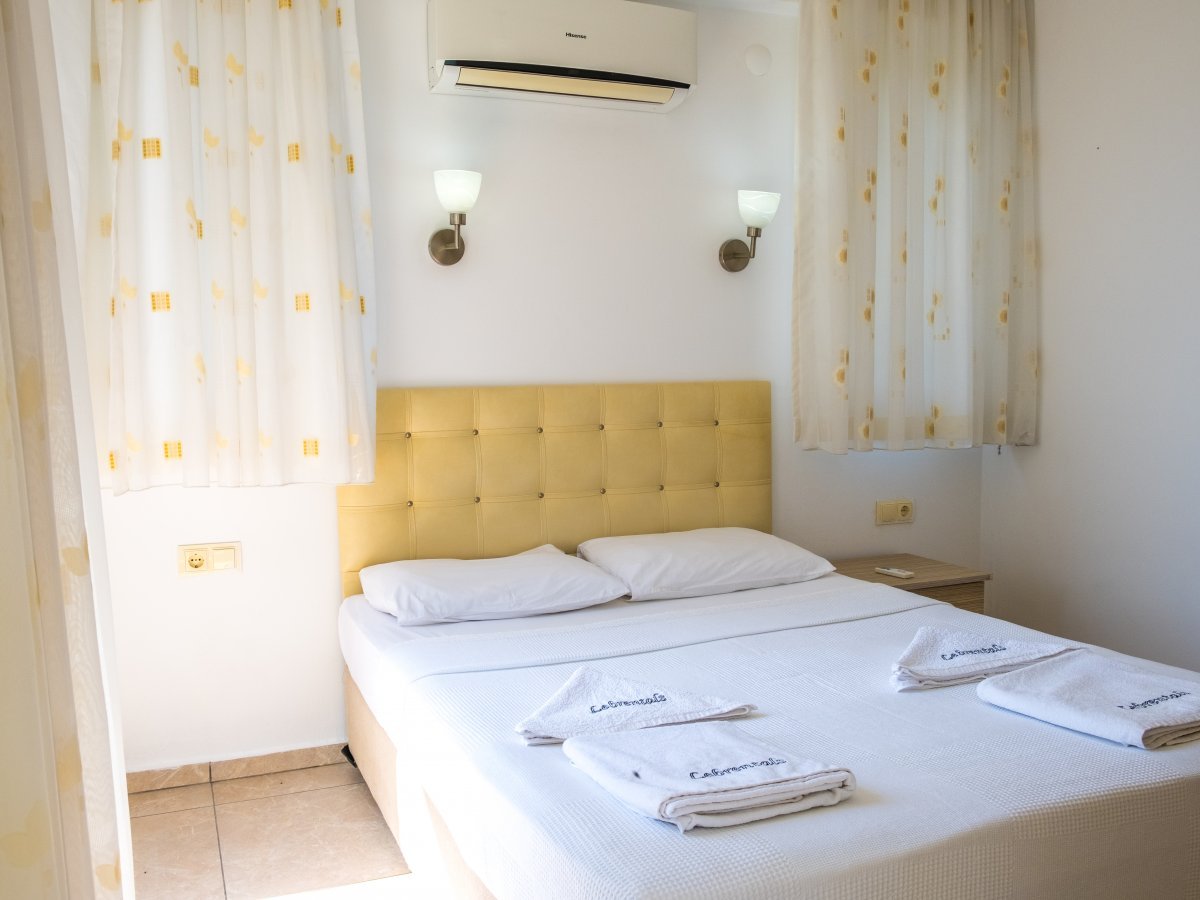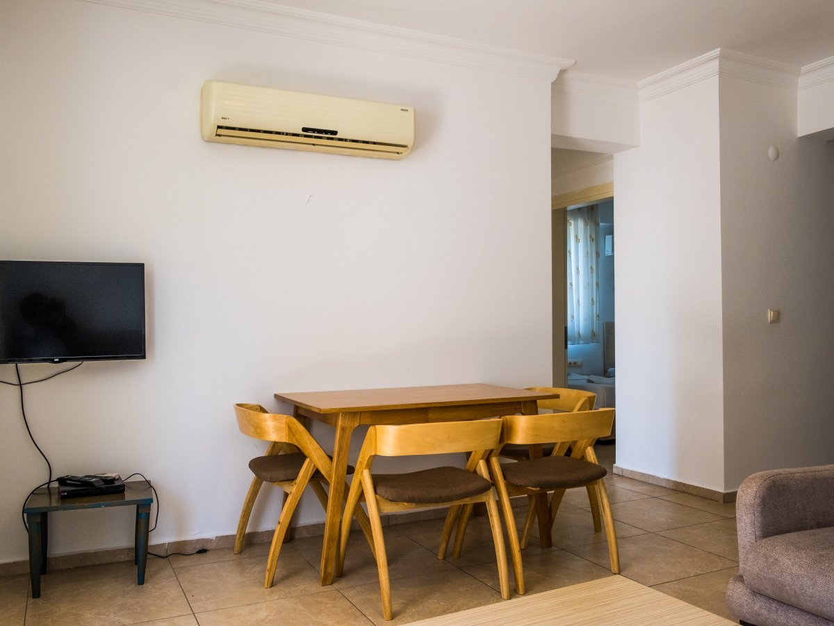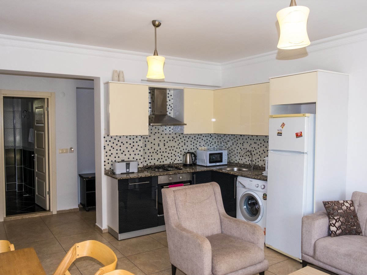 This lovely ground floor apartment is superb located in stunning brand new complex. Calis beach Fethiye Legend Complex is a collection of holiday rental apartments set around a large swimming pool with extensive landscaped garden. Your holiday home is set in a super location just meters away from the seemingly endless and action packed beach at the far end of Calis Beach bringing the smell of cool waters of Mediterranean Sea where you can find choices of beach front restaurants, bars and cafes scattered along the charming pedestrianized promenade with easy reach of 10 minute walk to resort center. The Dolmus (minibus) station is right near the complex for visits further a field and there’s also a Water Taxi if you want a leisurely way of getting to Fethiye - the nearest town with its brilliant eclectic Tuesday Bazaar. The area also has excellent sites and facilities for: - Diving (boat from Fethiye) - Paragliding (world famous site near Oludeniz) - Cycling and quad biking -- White water rafting FEATURES OF THE PROPERTY 2 bedrooms, sleeps up to 4 2 bathrooms on ground level FLOOR LAYOUT Ground floor: Lounge, kitchen, 2 bathrooms, 2 bedrooms one being ensuite All bedrooms have clean sheet and towels sets for each bed. All bedrooms have air-condition and nice view. Air-conditioned living area includes a sofa set, vacuum cleaner, iron and ironing board. Living area connected to poolside. This Holiday home has a modern design kitchen which is fully equipped with Refrigerator, Microwave Oven, Dishwasher, Washing Machine, Oven, hob, Kettle Dining Set, Pans, Pots and cutlery are available. Calis Beach Legend Apartments have Swimming Pool and Landscaped garden,. Pool And Garden maintenance is done once a day either in the morning or evening hours. Communal pool terrace has Sunbathing Area, sun loungers and umbrellas. Your Fethiye Calis holiday apartment is handed cleaned and in good conditions. Rental home has Wi-Fi. 24 hours security is available. Once a week midstay cleaning is included in the services. Pool and garden maintained once a day. Cleaned home textiles and towels sets are available for each person. Use of utilities of air conditioning, electricity, water, and gas is included in villa letting price. There is no extra charge. Cleaning more than a week, car hire, airport transfers, private tours, daily activities and daily excursions, health insurance are available on a fee. Breakage deposit is £ 200. It will be paid cash on arrival and will be returned you on your departure after inventory checking